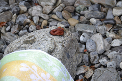 Oh, and by the way, there was this really weird thing on a rock by the river. It’s definitely not a worm, but no one could figure out what it is. Does anyone know? It’s the red thing in the photo below: