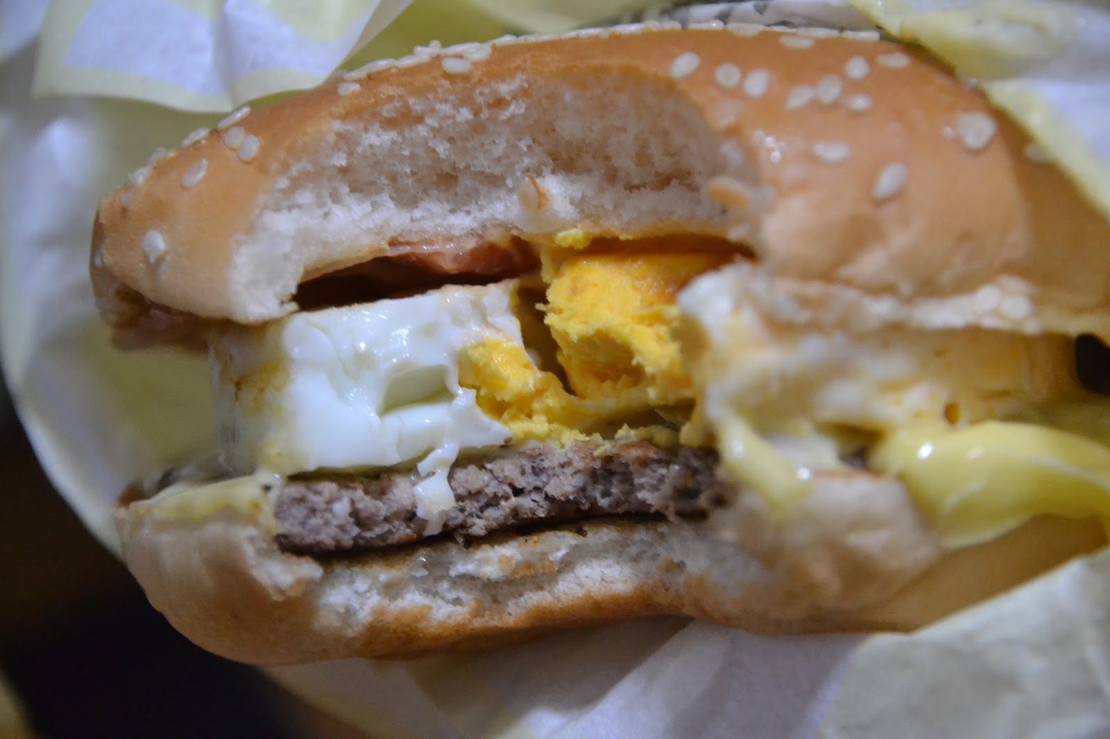 Taste-test time: It was good. I mean, how can beef and bacon go wrong? Plus, I like eggs, like the egg mcmuffin sort of eggs, so of course I liked this. I just wish the cheese had a stronger taste, I think the sauce that came on the bacon was stronger.