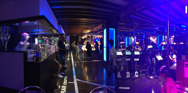 Not included in the menu are alcoholic drinks prepared by the robot bartender and the ice-cream prepared by the robot ice-cream man – er – robot.