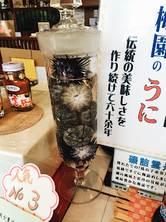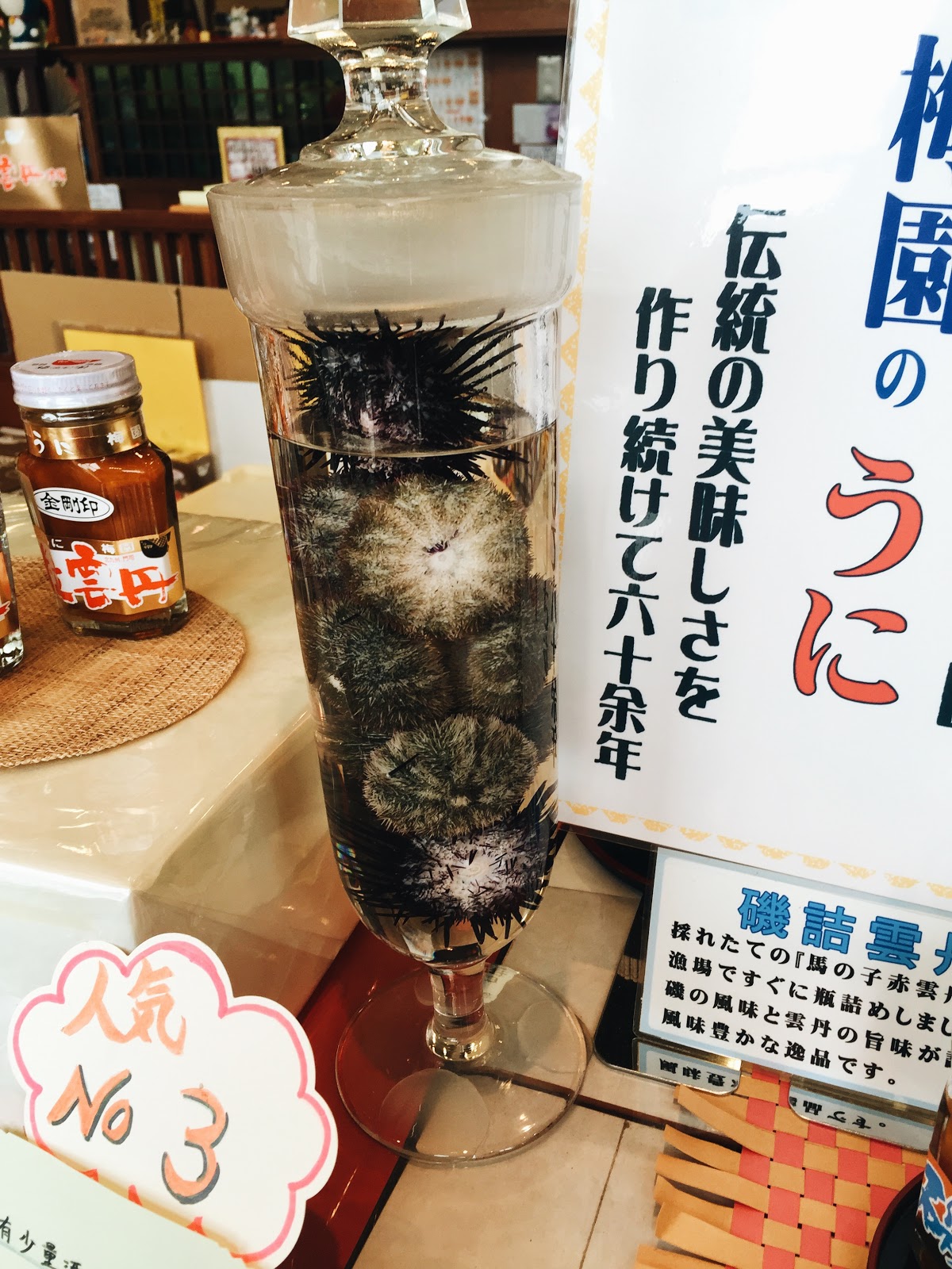 I managed to refrain from buying omiyage, but I was like O.O at this display jar of sea urchin (though my kouhai says it’s probably not real)