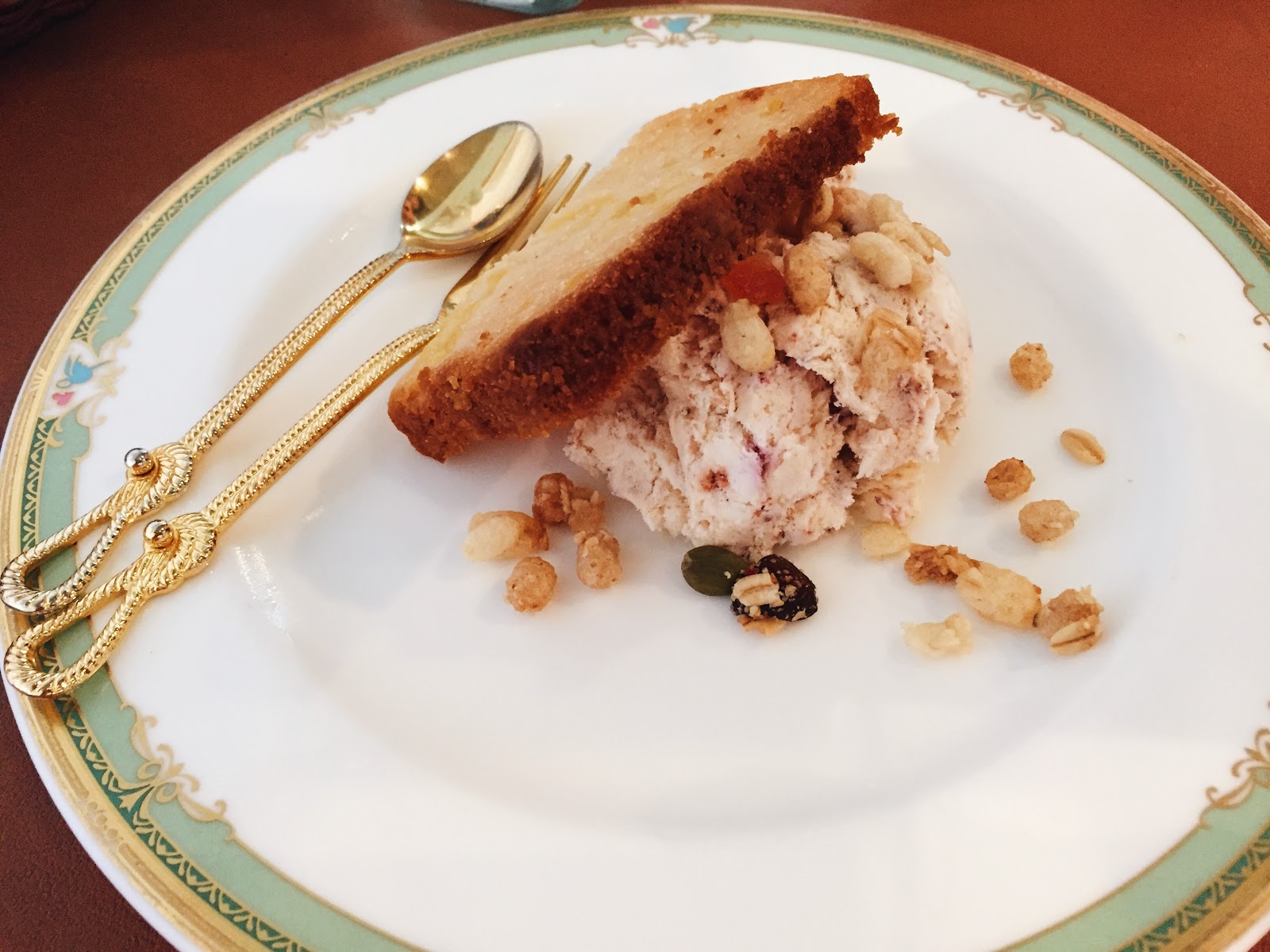 | pineapple cake, ice-cream and I think granola sprinkled on it |