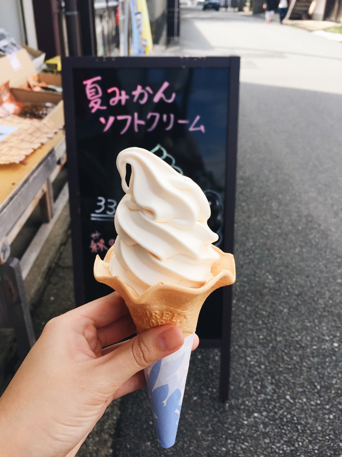 Another thing Hagi is famous for is natsumikan, so when we saw natsumikan ice-cream, we immediately got it