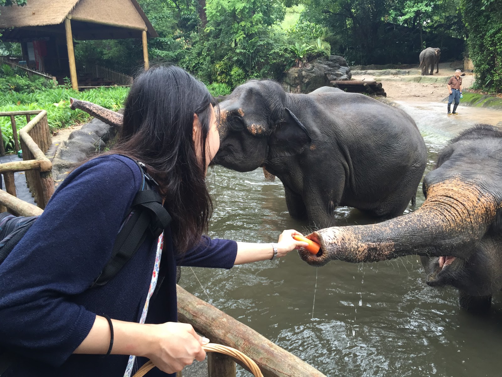 For some reason, the zoo wasn’t very crowded, which may be because it was raining a little. Still, it meant that we got more interaction with the animals that I normally get, such as feeding the elephants:
