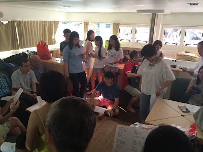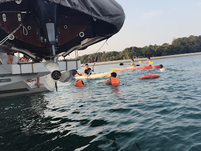 When we docked at Lazarus island, the younger kids (who actually bothered bringing a change of clothes) jumped in. The water was fantastic – not too cold and not warm, and they were kayaks and fishing rods too (though my sister used a different fishing method)