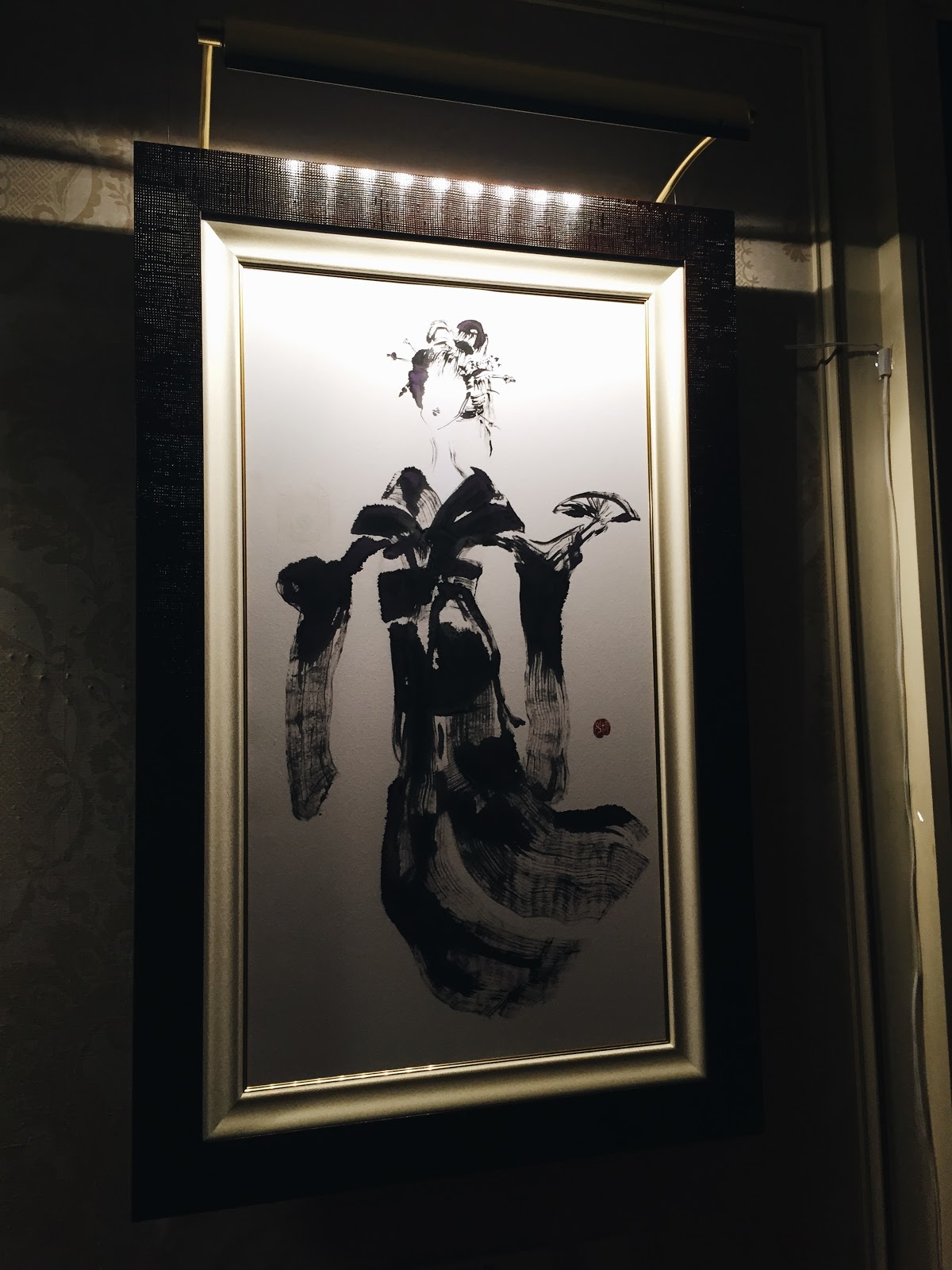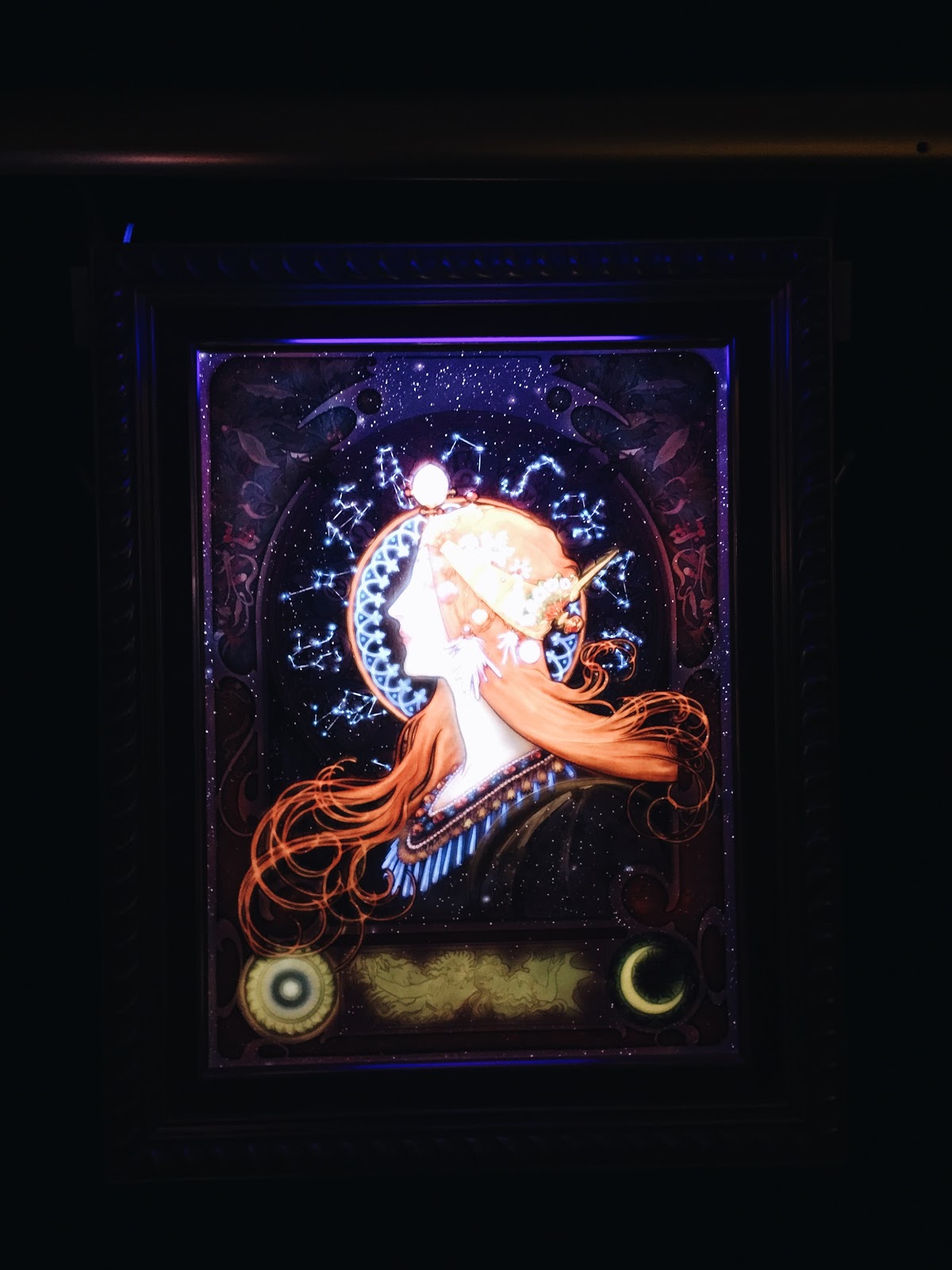 First, the painting thing. Basically, they have paintings that change colour depending on the type of light that is shone on it.