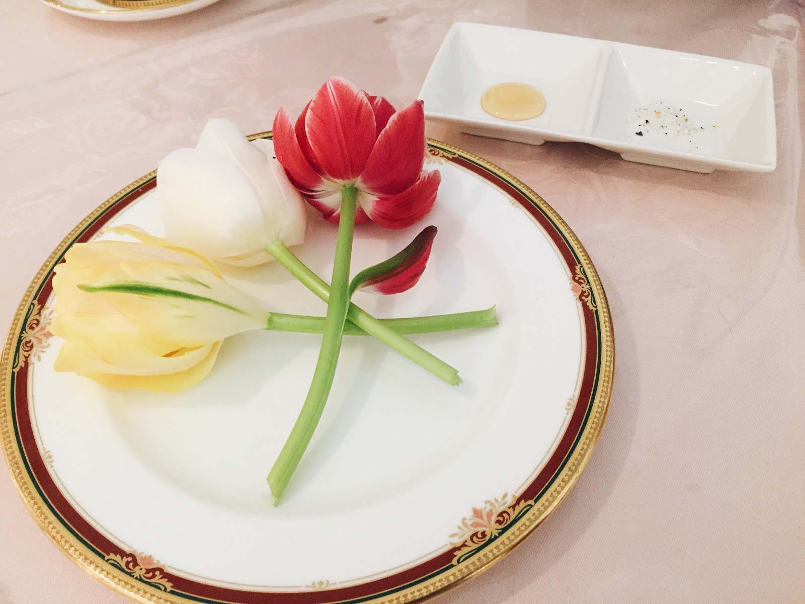 And because the palace is all about flowers, they even give you a chance to eat some! All the tulips are grown by us and they contain absolutely no pesticides and are safe to eat. They come with sauce – Bekah chose honey and they gave some salt as well.
