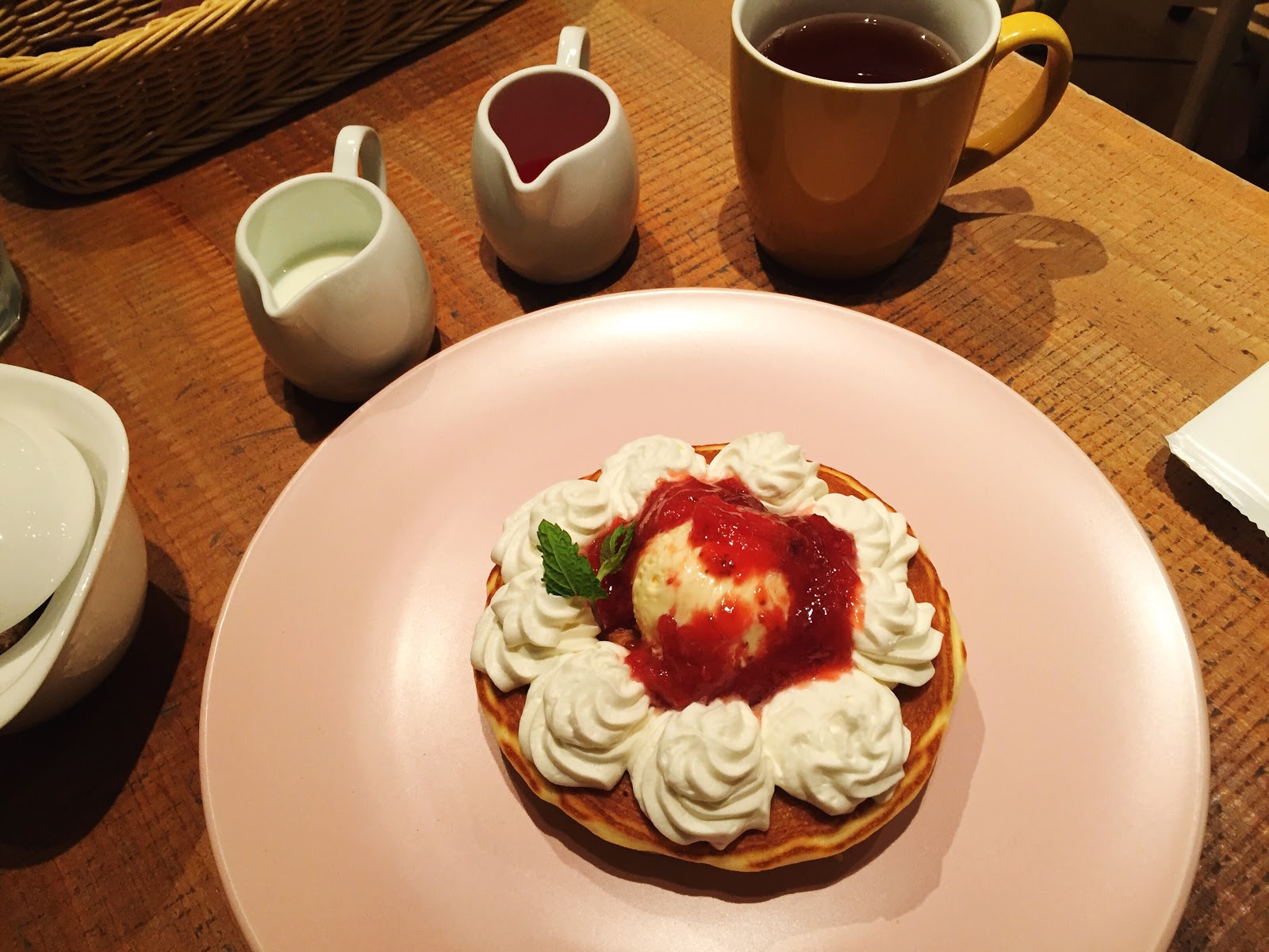 I added tea to the pancakes for 200 yen and chose their mango tea! The taste of mango wasn’t very strong, but instead it was a very fruity tea. Ok, I sound like I contradicted myself but what I’m trying to say is that while the tea tasted fruity, it didn’t particularly taste like mango. And for some reason, I had Mslena (I hope I spelled that right!)/Kunitachi Tea House vibes when I was drinking the tea.