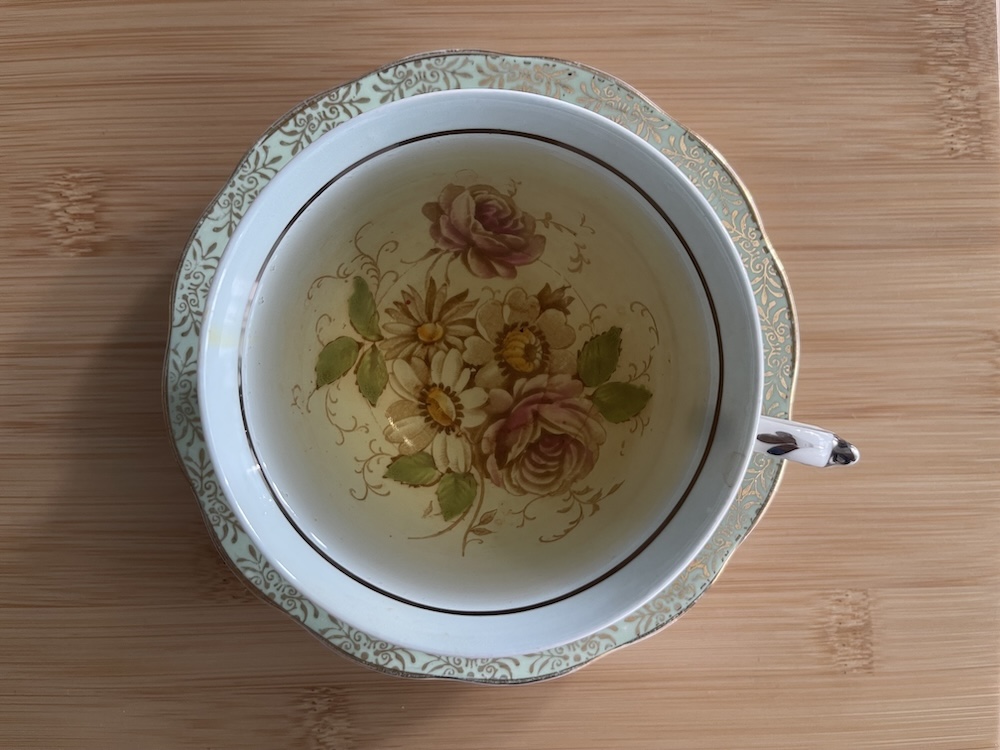 I steeped the second cup for a bit longer so it had a slightly deeper golden tea liquor (the light was also amazing at this point), but while there was a nice floral smell, the tea was not as sweet and the notes were not as distinct as the first cup. As the third cup was really week, I concluded that this tea is more of a one-steep tea rather than one that works well with multiple steeps.